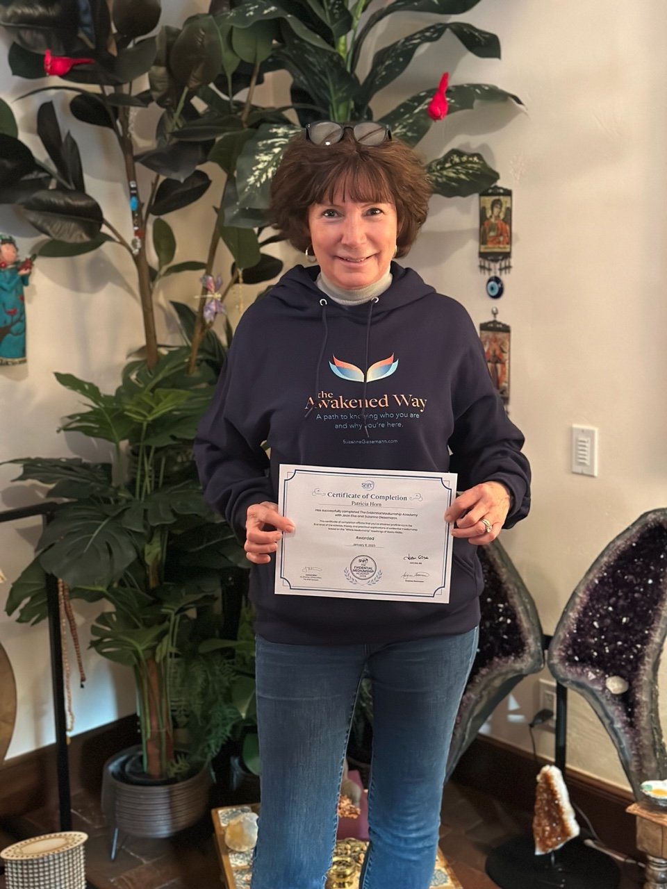 In 2024, Patty completed a year-long certification in Evidential Psychic Mediumship, studying the ethical, healing-based teachings of renowned Mediums, Mavis Pittilla and Suzanne Giesemann. Her philosophy centers on love, compassion, and doing no harm.
